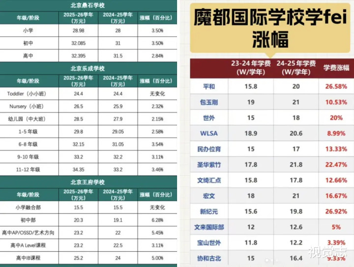 今年以来,北京、上海、深圳等一线城市的国际学校陆续发布学费上调通知。尽管各校涨幅不一,但整体趋势持续向上。尤其令人咋舌的是,部分学校学费的年度涨幅甚至超过25%,远远跑赢中产家庭的收入增长。
